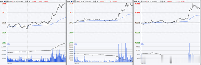 昨夜特朗普再生事端,对于国内清明假期期间加征34%的果断反制,再度无理取闹着要额外加征50%关税。中美贸易战再度升级,资金嗅觉敏锐,迅速瞄准我国进口反制的相关品种,关键是这些品种价格低、而且期货贴水,这种状态下自然更容易得到资金青睐,我们也可以看到大多畜牧类品种出现资金流入的现象,推高市场。
